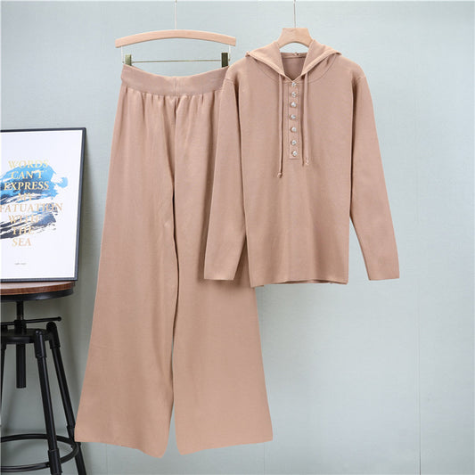 Apricot Mid-Length Knitted Wide-Leg Two Piece Set