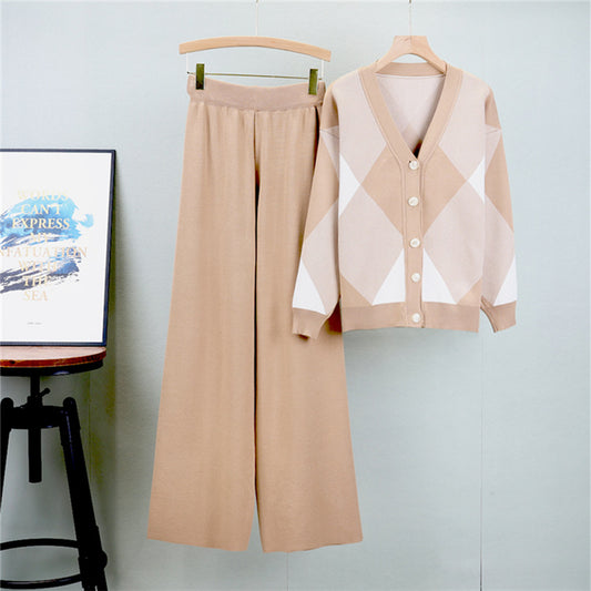 Apricot Mid-Length Knitted Wide-Leg Two Piece Set