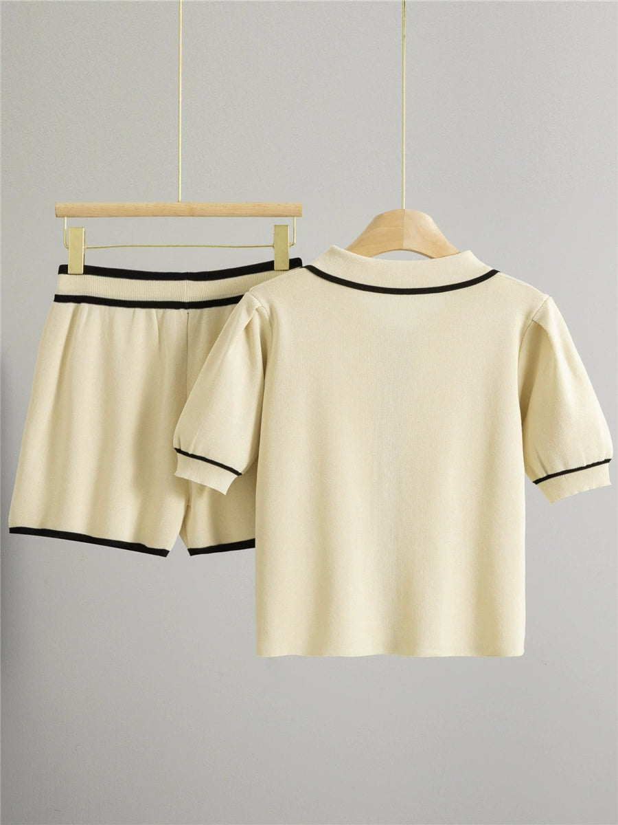 Apricot – Casual Short Cardigan Two-Piece Set