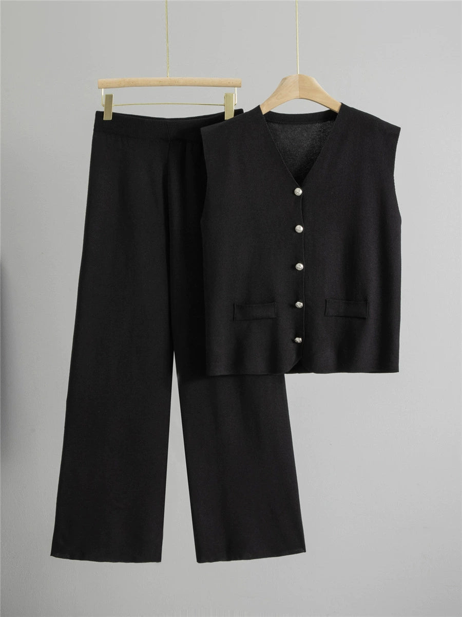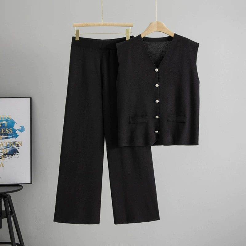 Black – Loose Cardigan Sleeveless Two-Piece Set