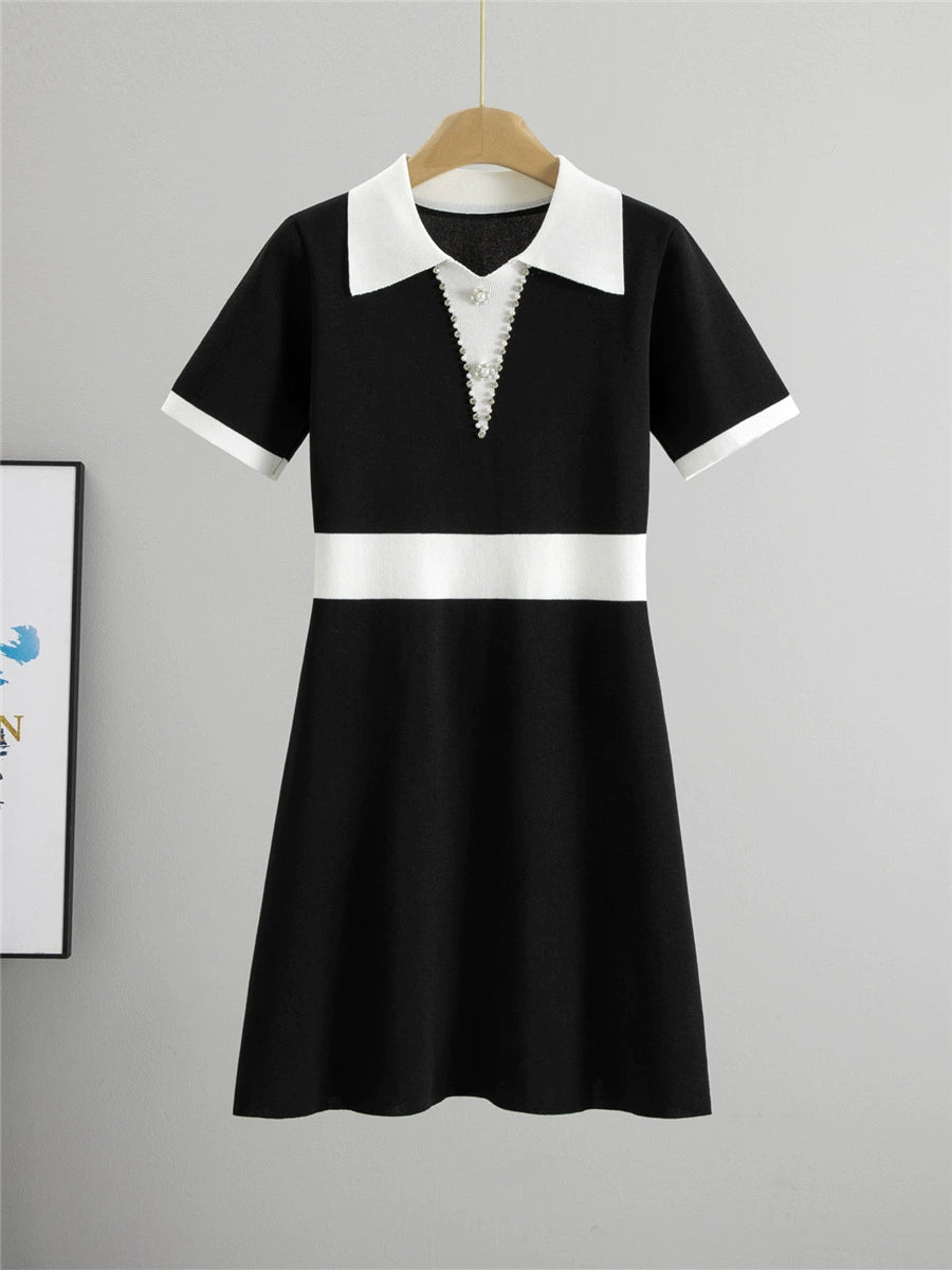 The Black Slim Fit Short Sleeve Knitted Dress blends timeless elegance with casual comfort. Featuring an A-line cut, polo neckline, and soft knitted fabric, it’s perfect for daily wear or dressing up with accessories. The deep black shade offers a sleek and versatile base for any outfit.