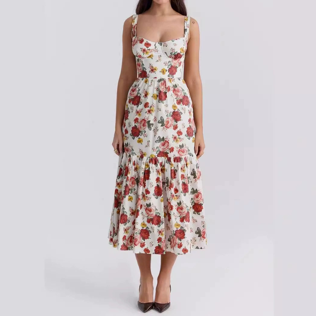 Embrace a flirty, feminine vibe with the Floral Backless Spaghetti Strap Dress. This lightweight and breathable dress is crafted from a soft blend of cotton and regenerated cellulose fiber, ensuring both comfort and style. The V-neckline and sleeveless spaghetti strap design highlight your collarbones, while the open back adds a touch of daring elegance. With a classic slim camisole silhouette, it's perfect for beach outings, summer strolls, or weekend getaways.
