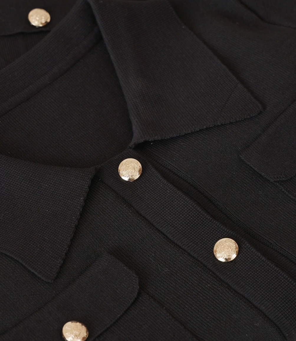 The Knitted Slim-Fit Two-Piece Set in black offers a modern and polished look for any occasion.