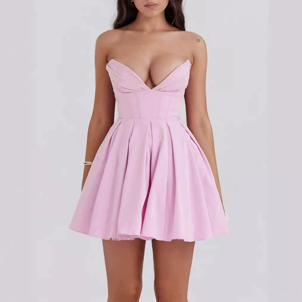 Pink-Purple – Strapless Waist-Cinching Sexy Dress