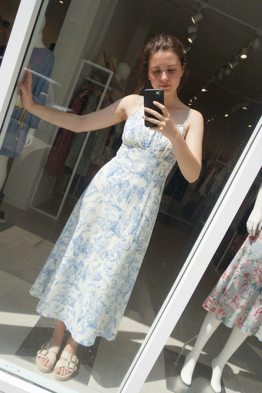 The Virelle Blue Aura Midi Dress features a soft A-line silhouette with a clean printed design, creating a fresh and feminine look. Designed with a flattering high waist and sleeveless cut, it enhances the natural shape while maintaining comfort. The midi length adds elegance, making it suitable for both casual and social occasions.