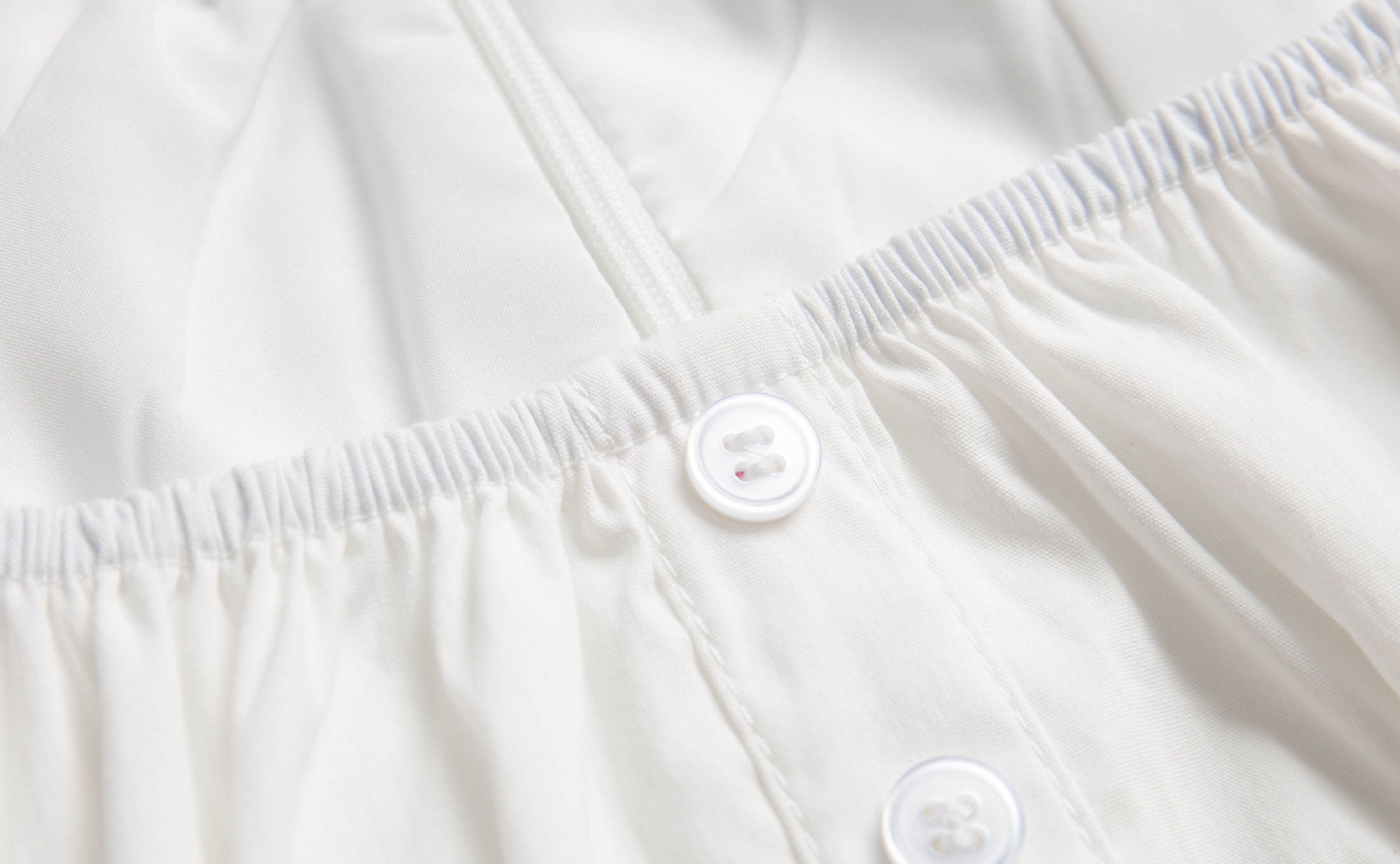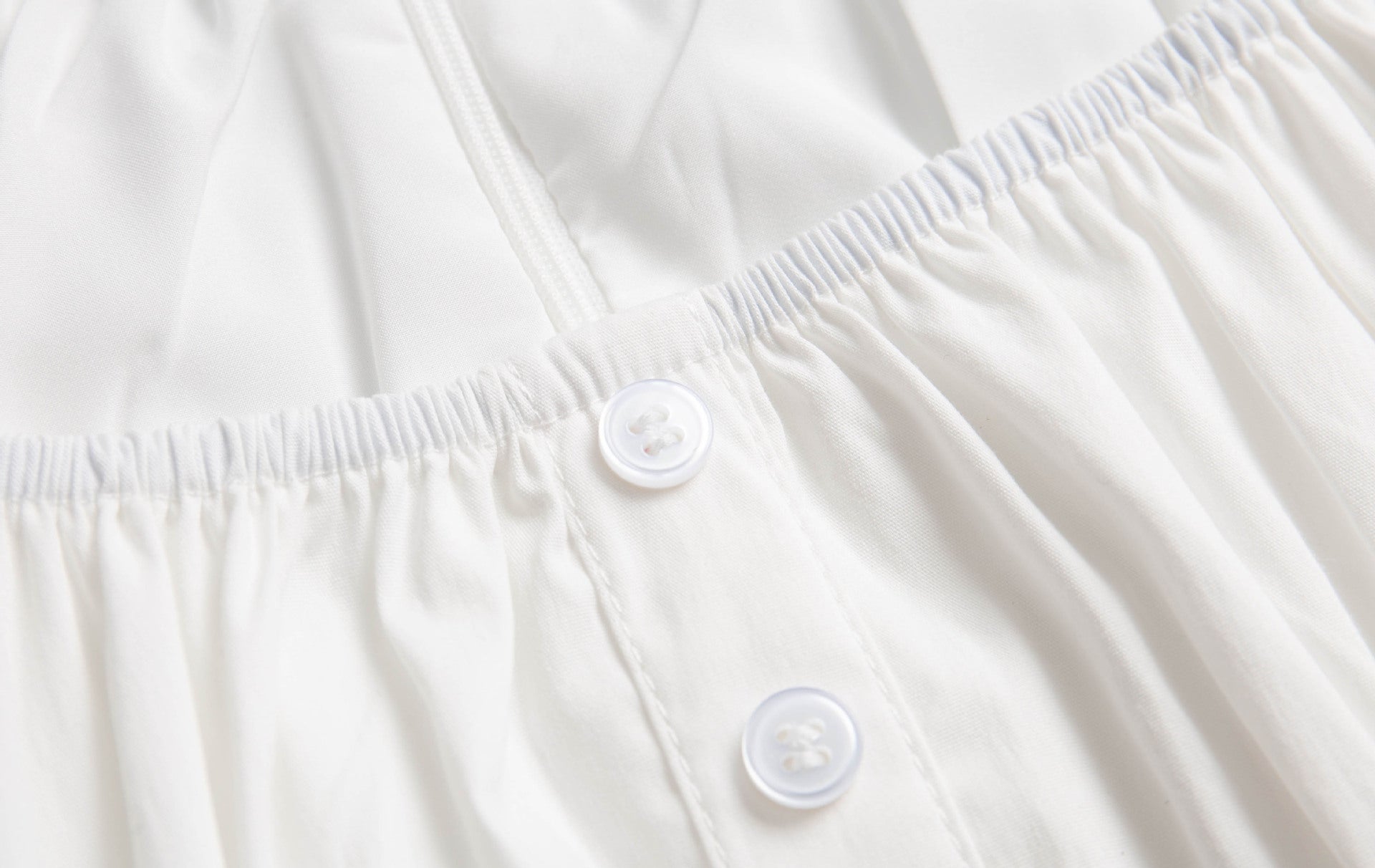 This White Vintage Slim-Fit Waist Dress brings together timeless charm and modern comfort. Crafted from a soft blend of cotton and regenerated cellulose fiber, the fabric is lightweight and breathable, ideal for warm-weather outings. The A-line skirt and slim-fit waist accentuate your natural curves, while the square neckline and puff sleeves lend a retro, romantic feel. Weighing just 0.3KG, it's the perfect dress for elegant daytime events or casual dates.